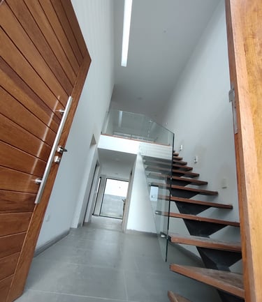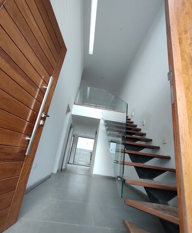 Casas de lujo de dos pisos, tres dormitorios, sala comedor, cocina tipo americana, área de lavado, baños, dos estacionamientos, patio posterior; sala de estar dependiendo del modelo de casa. Todo con muebles y acabados de calidad.