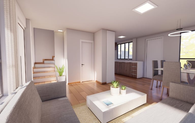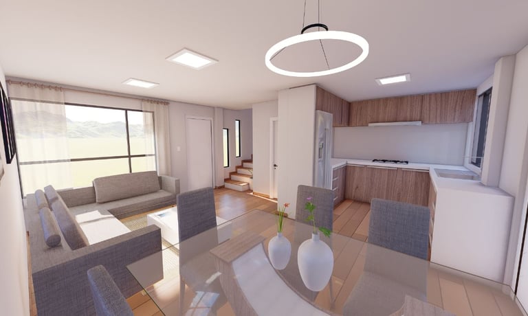 Las casas cuentan con dos pisos. Planta Baja : Sala, comedor, cocina y baño social, patio posterior con área de lavandería, y un estacionamiento. Segunda planta: Dos dormitorios, baño completo compartido, y Dormitorio Master con baño completo.