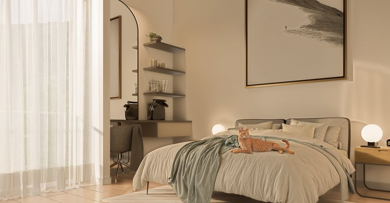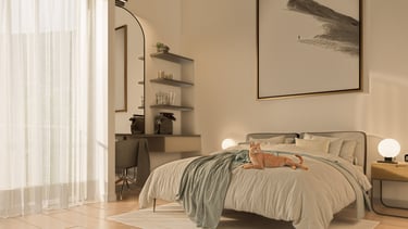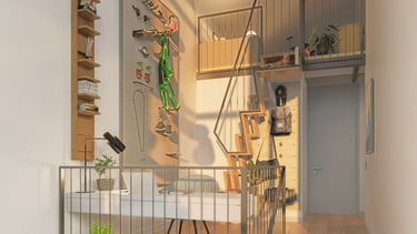 人 HITO continúa adaptándose a ti. Al inicio de la segunda planta, te recibe una estación de trabajo o estudio, un espacio práctico diseñado para tu productividad. Además, los dormitorios se ajustan a tus necesidades: tres habitaciones o, si prefieres amplitud, dos habitaciones con una suite principal más espaciosa.