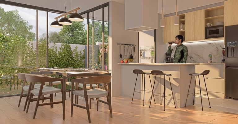 Desde el engawa, un patio tipo japonés que conecta suavemente el exterior con el interior, hasta la doble altura que inunda de luz cada espacio, 人 HITO está diseñada para evolucionar contigo. Con una elegante cocina tipo isla, un patio posterior y áreas que se integran para disfrutar al máximo cada momento, esta casa se adapta a tu estilo de vida diario, ofreciendo flexibilidad en cada ambiente.